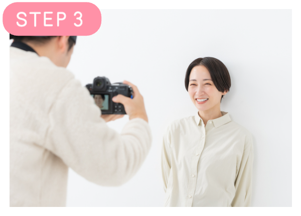 提携フォトスタジオにて、プロフィールに掲載する写真を撮影いたします。